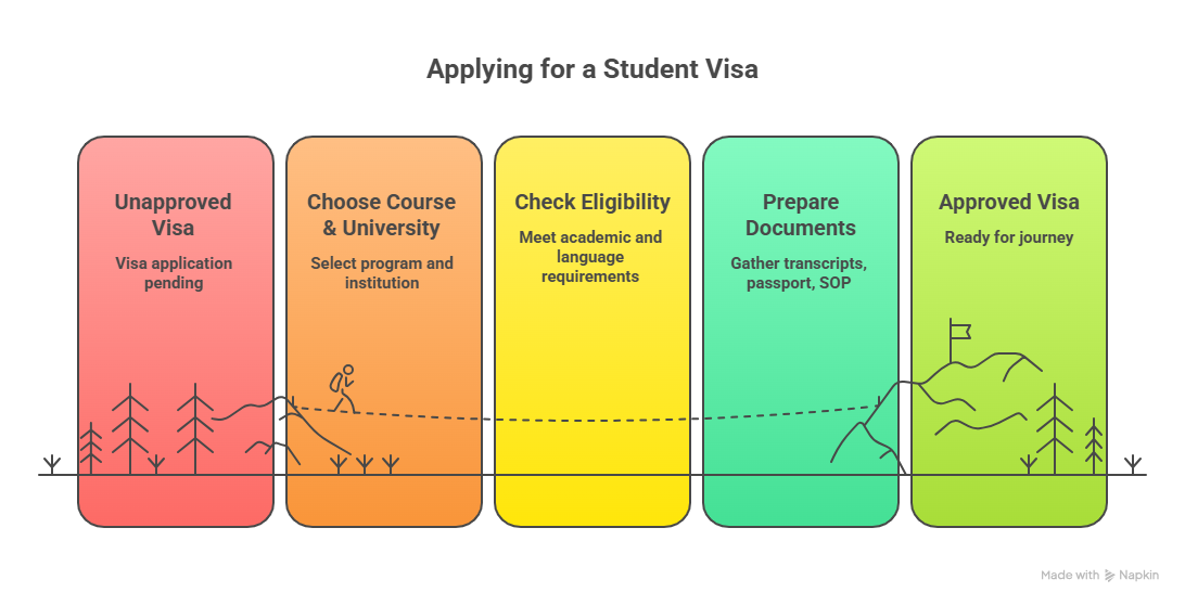 - Prepare the necessary documents (marksheet, passport, SOP).